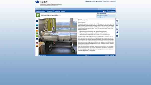 The specialist portal Safe Hospital is an interactive online compendium for occupational health and safety in hospitals, clinics and related facilities. There is a graphical interface for users in the form of a virtual hospital to select individual work areas (e.g. the operating room), individual work equipment (e.g. an anesthesia machine) or typical activities (e.g. surgical cleaning). The assigned articles provide a clear and comprehensible description of the hazards associated with the work eqquipment or the activity, as well as suitable, tested and legally compliant protective measures. Pictures, graphics and films illustrate the statements. Online tools such as the media library with selected work safety media as well as market surveys in the form of databases for important work tools (e.g. safety devices), complete the portal's offer.