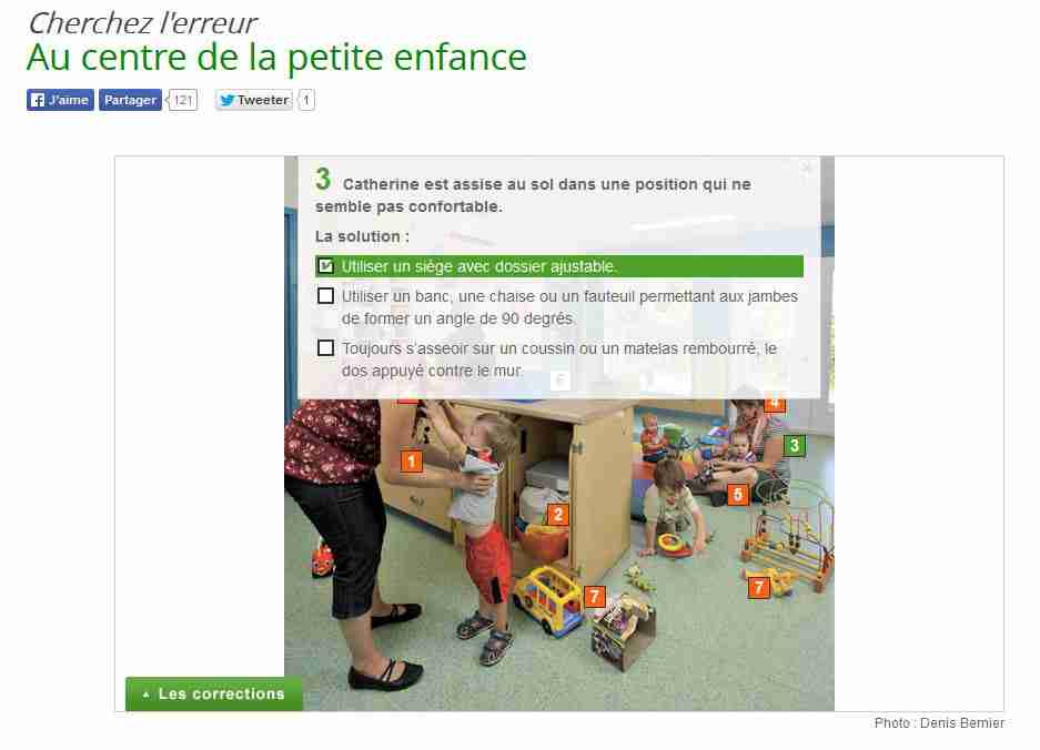The key message of the website, http://cherchezlerreur.ca/, is to show safe work practices in different situations. Its objective is first to offer an educational tool. Indeed, it can be used both as a source of information and training, to which reference can be made because it was validated by experts. With its fun and interactive form, it is the ideal tool for disseminating information on occupational safety and health - based on practical cases. It also helps to make laws and regulations regarding safety and health at work known.